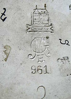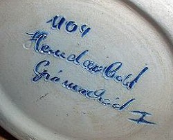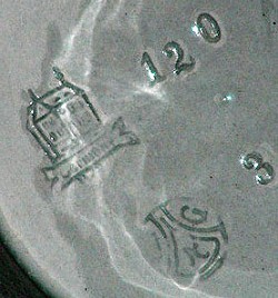 Unusually combined impressed Abbey mark together with impressed MG initials on Girmscheid #961. The Girmscheid Abbey and the Mettlach Abbey marks are occasionally confused.
