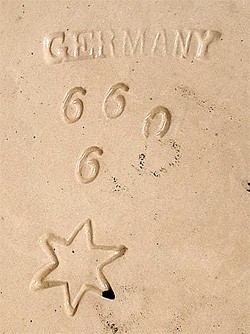 M. Girmscheid #660, complete with impressed curved "GERMANY" in serif font, and star marks. Whilst this is not a maker's mark, it is certainly an identifier.