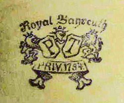 "Royal Bayreuth" ink stamped mark - 1902 onward . "PT" stands for Porzellanmanufaktur Tettau.
