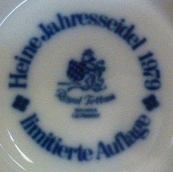 "Heine Jahresseidel 1979, Limitierte Auflage, Royal Tettau, West Germany"."Annual stein 1979, limited edition, Royal Tettau , West Germany".