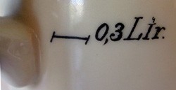 The capacity mark is on the other side of the handle to normal, i.e. the right side.