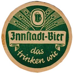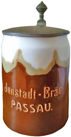 Brewery stein Innstadt -Bräu, spelt with a "J" rather than an "I".