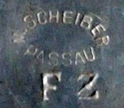 M. Scheiber of Passau pewterer's mark, plus Fein Zinn (for pure pewter, with no lead).