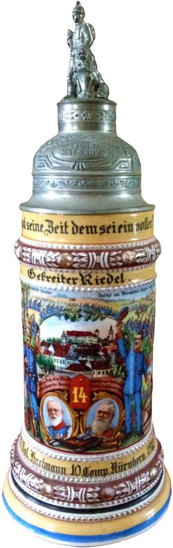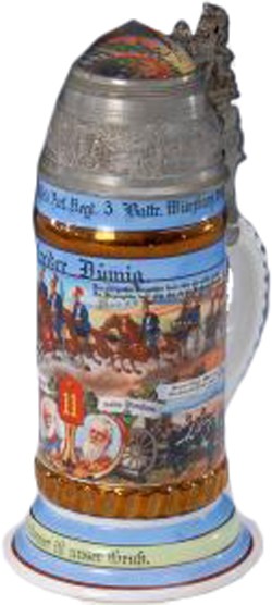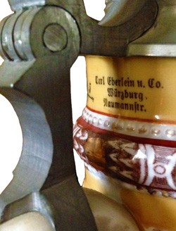Carl Eberlein, was born in 1872 and died in Würzburg in 1937. He was a supplier of militaria; which included Pictures, Beer Steins and Tobacco Pipes, produced "in House", for both retail and wholesale. He founded his company in 1900, but his marketplace dried up in 1914, when the troops were posted away from Bavaria to both the Western and Eastern fronts.