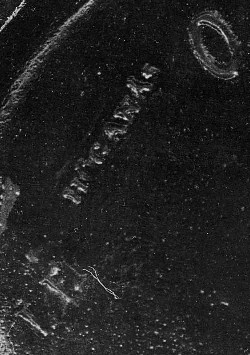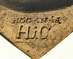 Impressed mark from a wine ewer. H.i.C. mark possibly the modeller's initials?