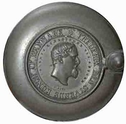 Pewter lid on featured stein, showing Frederick 7th. (b.1808 - d1863). King of Demark from 1848.