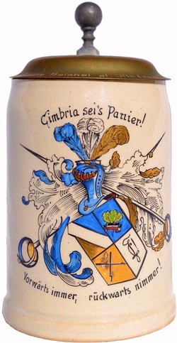 6/20 litre, Marzi & Remy, unknown mould number, but dated 1925 - 1930.Student association motto "Gimbria sei's Panier""Vorwärts immer, rückwärts nimmer!"Forward always, backward never!