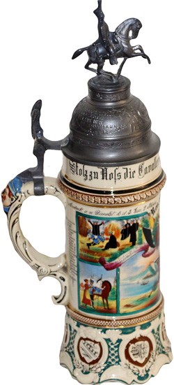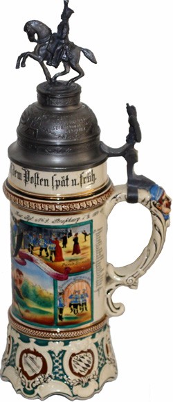 Regimental (Cavalry) stein dated 1904 - 1907.Side view.