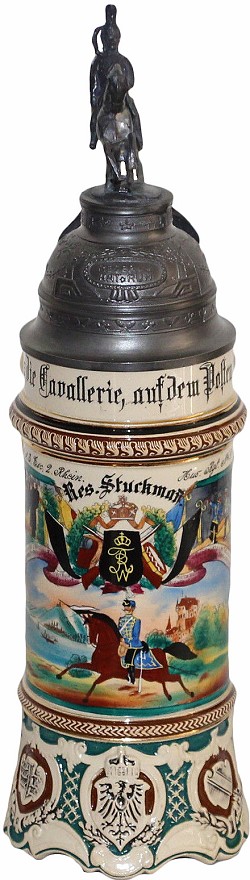 Regimental (Cavalry) stein dated 1904 - 1907.Front view. The lid is a replacement.