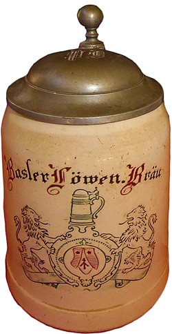 Basler Löwen.Bräu Brewery stein Dated 1905 - 1914.