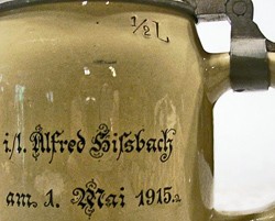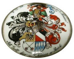 Hermann Huth (b.1874 - d.1953) was a merchant and not a decorator, so when his brother Franz decided to become an artist and left Pößneck, he took over his father's business which included one or two decorators. The product range became mainly souvenir items from Pößneck, which included plates with the Pößneck coat of arms, cups showing the townhall, and beer steins with views of Pößneck. They had opened the Heidelberg branch, Manufaktur für Kunstgewerbe, Glas-, Porzellan- und Wappenmalerei / Manufacturer of applied arts, decoration of glass, porcelain and coats of arms, at Ziegelgaße 22 in 1903, but closed that shop in 1906 and worked from a flat at Werderstraße 40 until 1909. The business of