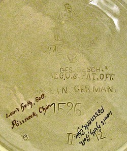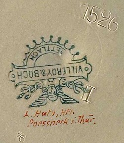 Conta & Böhme, which was in production between 1790 and 1940. Louis's father, Carl Friedrich Huth (b.1813 - d.1891) was apprenticed as a porcelain decorator at Conta & Böhme. In the mid 1830's he started his own workshop at Heiligengasse 21, decorating bowls of tobacco pipes which mostly were delivered to Gebrüder Ziegler of Ruhla. In 1845 he took over Conta & Böhme Niederlage, i.e. their factory outlet, which allowed him easier access to their blank pottery. Around this time, he also purchased Krautgasse 8 and moved his business there. Between 1873 and 1876 he transferred his business to his son Louis. Louis's skill added to his father's business. The decorated porcelain items, e.g. cups, wall plates, student items etc. were fired at the kilns of Conta & Böhme. In 1886 he purchased Marienstraße 1, which had both workshops and a shop at the front. In one of the rooms at the back of the house he installed a