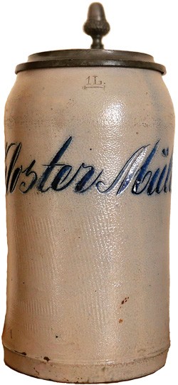 One Litre (Mass) Regensburg stein, Augustiner Bräu Kloster Mülln Dated circa 1900.