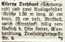 1926: Otto Haber, selling off an old lathe plus bits, surplus to requirements.