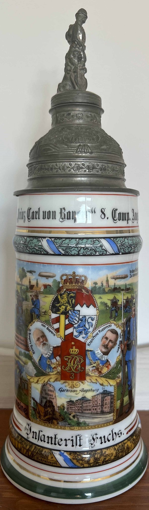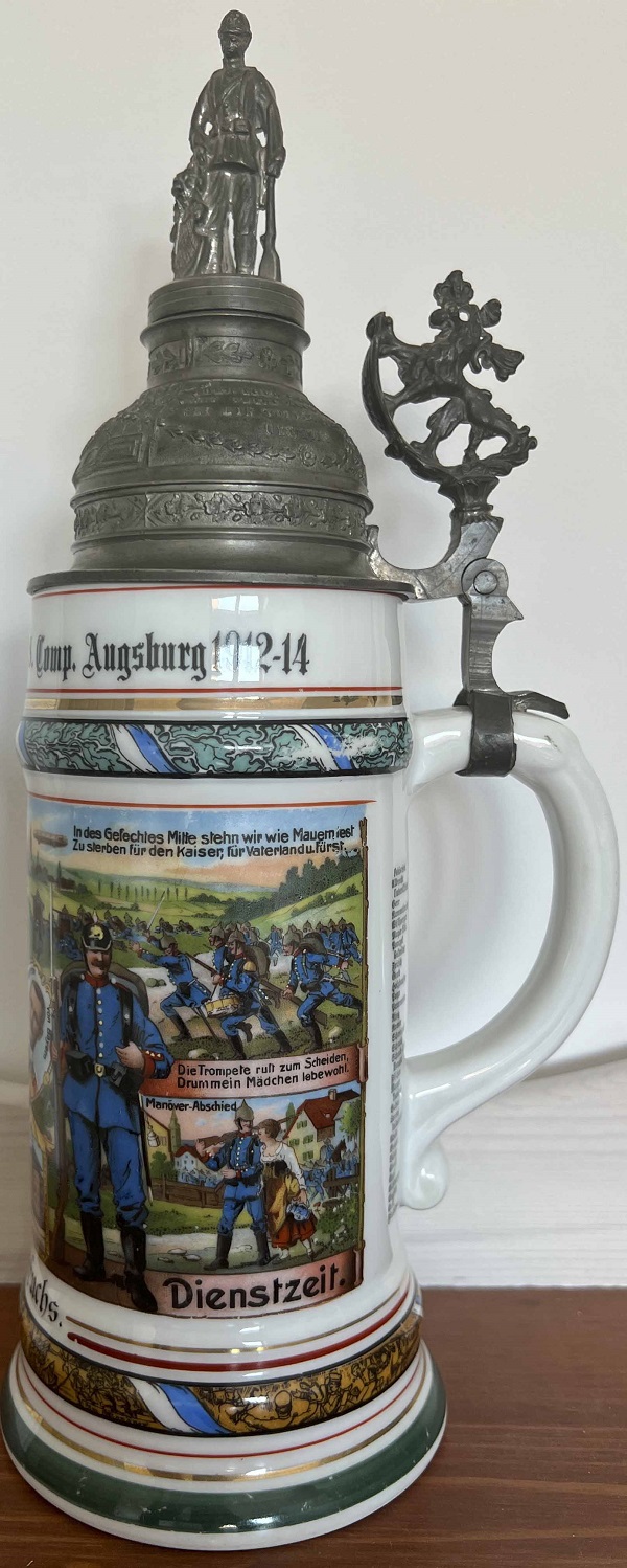 A regimental stein, dated 1914, decorated by Joh. Wolferstetter
