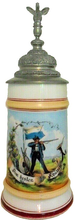 Side view. 1/2 litre Porcelain stein. Shooting Prize. " Dem besten Schützen"