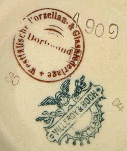 Ink stamp on Villeroy & Boch - Mettlach #1909, dated 1904. Dortmunder Actien Brauerei.