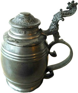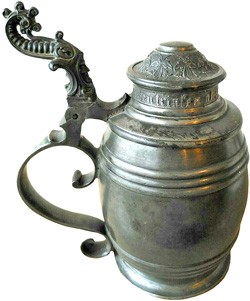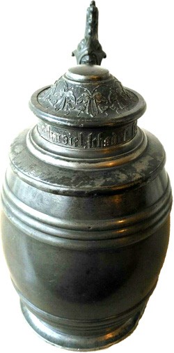 1/2 litre all pewter stein, date range 1874 - 1908.