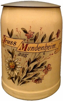 Vendor's mark on the underside of the lid of the ceramic stein.