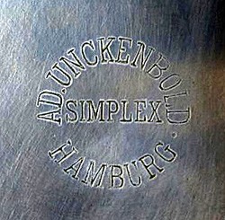 The stein itself was bought in, with "Simplex" moulded into the base.