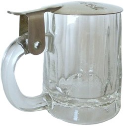 Vendor's mark on the underside of the lid of the pressed glass stein.