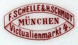 F. Schelle u. H. Schmidt Victualienmarkt 4, München. Basemark on a meat serving dish.