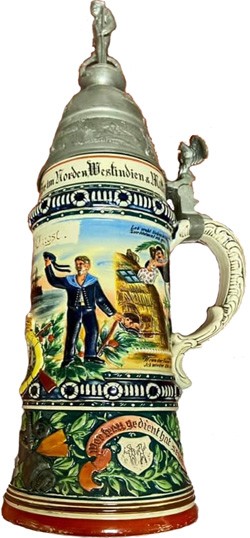 S.P.Gerz, Navy Reservist stein 1 litre. "Wer treu gedient hat seine Zeit, dem sei ein voller Glas geweiht." (Who has faithfully served his time, to him a full glass is dedicated.)