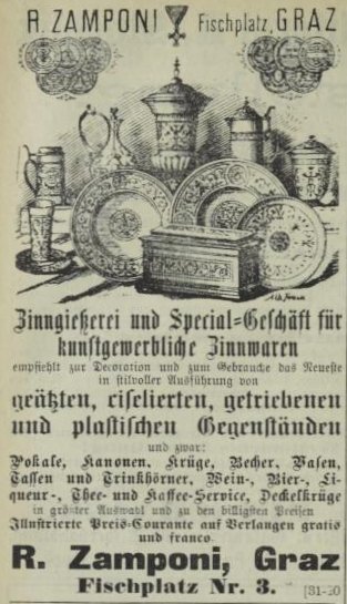 born on December 7th, 1850 in Leoben/Styria as the son of the pewterer Johann Zamponi and died on May 14th, 1924 in Graz.