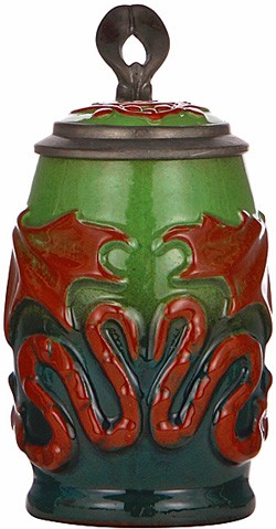 Typical von Heider design stein with Dragon relief motif and unique thumb lift. Picture supplied by Andre Ammelounx The Stein Auction Company
