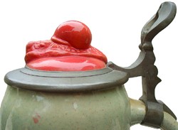 Side view of the featured stein giving extra detail of the pewter, and also the snail lid inlay.
