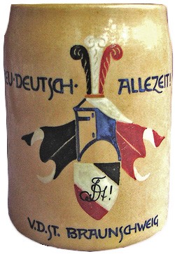 "Treu. Deutsch. Allezeit." "Faithful. German. Always." V.D.ST. Braunschweig Student stein dedication: Emil-Robert, Heinz, Wolfgang, i-lb, Ekkehard.
