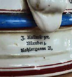 Artist's signature on featured stein. Address is Klaragasse 12, dated 1912.