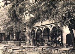Hofbrauhaus and Brauerei zu den Drei Kannen of Ulm, founded 1831/32. The "Biergarten"shown above was created in 1912. The owner, circa 1927, was Karl Eiselen. This brewery under different ownership is still in business today.