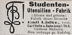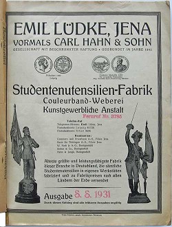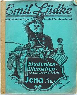 "Die grösste Studentenrequisiten-Fabrik Deutschlands" / "The largest fabricator of student's gifts & regalia in Germany".