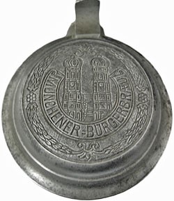 "Münchener Bürger Bräu" lid of featured stein. This identical lid has been seen made by at least one other pewterer, e.g. G. Käsbauer