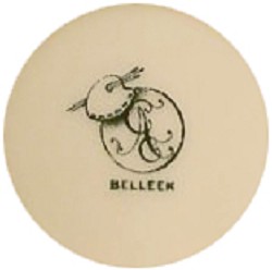 "Pallette" mark for Belleek, on the base of the featured lidded stein, on right, dated 1889 - 1906.