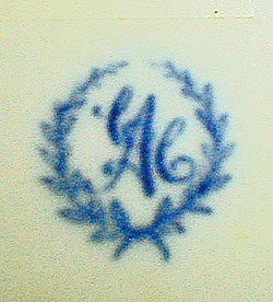 Ink stamp. Between 1896 and 1906. The green colouration indicates the piece was sold as whiteware for decoration by a non-professional decorator.