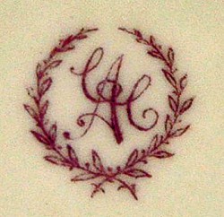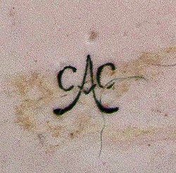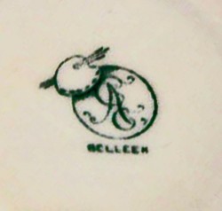 "Pallette" mark for Belleek, dated 1889 - 1906, showing intertwined CAC.