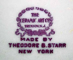 The Ceramic Art Company of Trenton, New Jersey, was founded in 1889 by J. Coxon and Walter Scott Lenox as an Art Pottery and was an early producer of American Belleek porcelain. In 1896 Jonathan Coxon departed and the company continued as the Ceramic Art Company with the word Lenox added beneath the CAC mark.