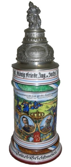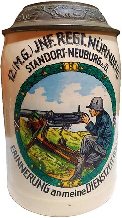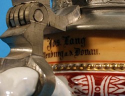 Pewter lid, on interwar stein (left), indicating that the soldier served in WWi and was a member of "Der Stahelm", an organisation for WWI veterans. ×