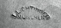 Theatinerstraße 44, near the Marienplatz. Between 1897/98 and 1908, Ludwig Lichtinger sold the business to a member of the Iblher family. The mark, (right 2nd down), reads to the author as P. Iblher, and might be a anticedent of Franz Iblher. Franz Iblher was certainly the proprietor by the 15 October 1908 and he was still the proprietor in 1927, located in Klenzestraße 12.