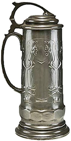 Basemark on featured metal Art Nouveau pewter stein shown on left.