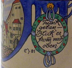 Signature on 1 Ltr.Wick-Werke stein with St Hubert motive.