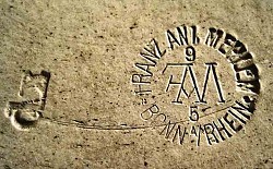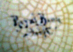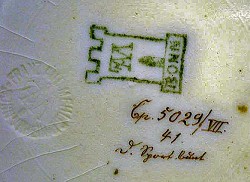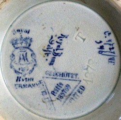 Ink stamp mark,"Crown & shield", plus impressed roundel, dated circa 1890 - 1920.