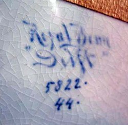 Handwritten ink mark, "Royal Bonn, Delft", dated 1890 - 1920.