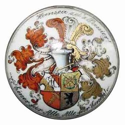 Franz Müller founded his business in 1896 or just before. He had many addresses, starting off with his first premises at Gartenstraße, where he stayed until the beginning of 1899. April 1st 1899 saw him in business at Friedrichstraße, until 1902. He then moved in 1903 to Linienstraße, until the first part of 1907. The remainder of 1907 to 1909, the business traded from Louisenplatz. Many of the student fraternities were resident in Elsässer Straße, so to profit from their business, in 1910 he set up shop at No.39 where he stayed until at least 1943. From the mid 1930's, the student fraternities were terminated one by one by the National Socialists, therefore Müller had to diversify his product range to stay in business. Digitised records are currently not available after 1943, so Franz Müller's future after this date is unknown.