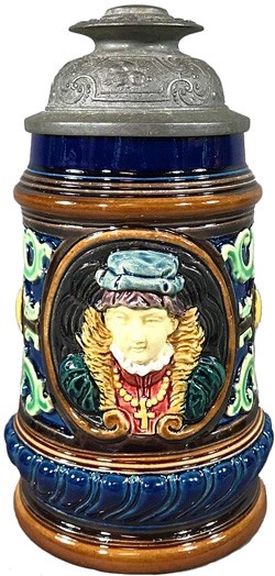 0.5 litre stein #1484, side view, with figural set-on lid.