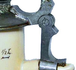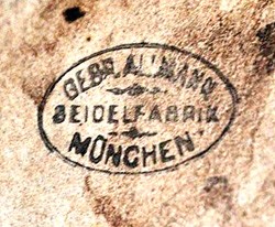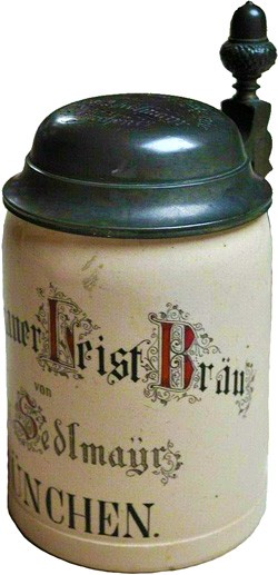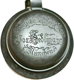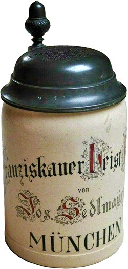 Ink stamped basemark on the brewery stein, Franziskaner-Leist-Bräu von Jos. Sedlmaÿr, München, dated 1909 - c.1914.