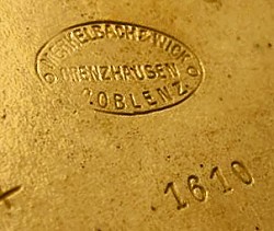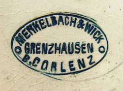 *Merkelbach, Stadelmann & Co. Gartenstraße 3, Grenzhausen, was founded by Friedrich Wilhelm Merkelbach II, Theodor Stadelmann and Julius Schröder, around 1867 - 1872, solely as a manufacturer of grindstones and whetstones. By 1910 the company was owned by (Konrad) Ludwig Wick, but in 1912 was transferred to his wife, Emma