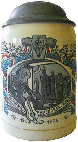 Unusual student stein, dated Winter Semester 1905 - 1906